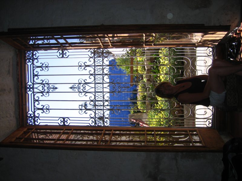 Mum standing oustide the window of our room at our favourite hotel of the trip in Arequipa